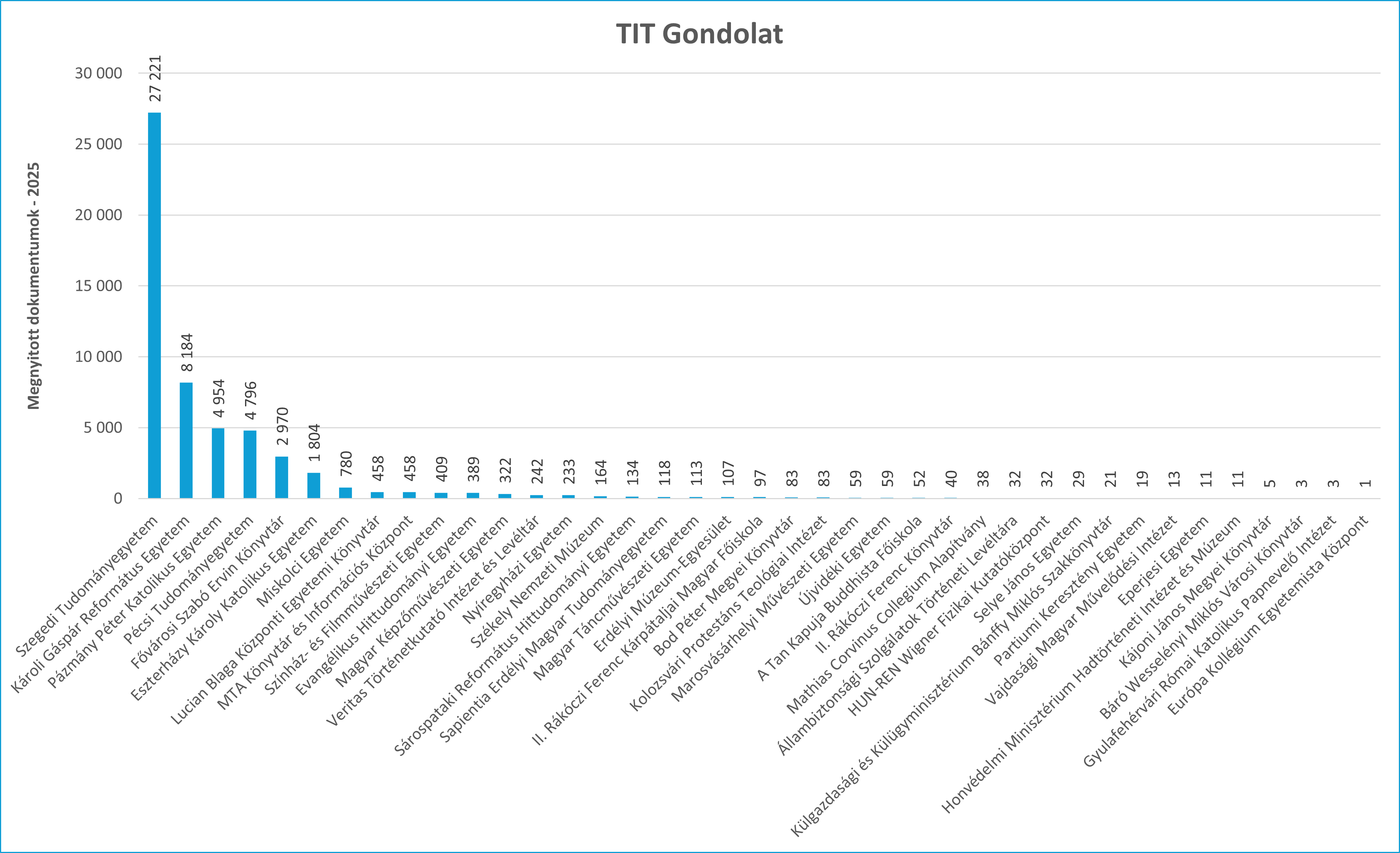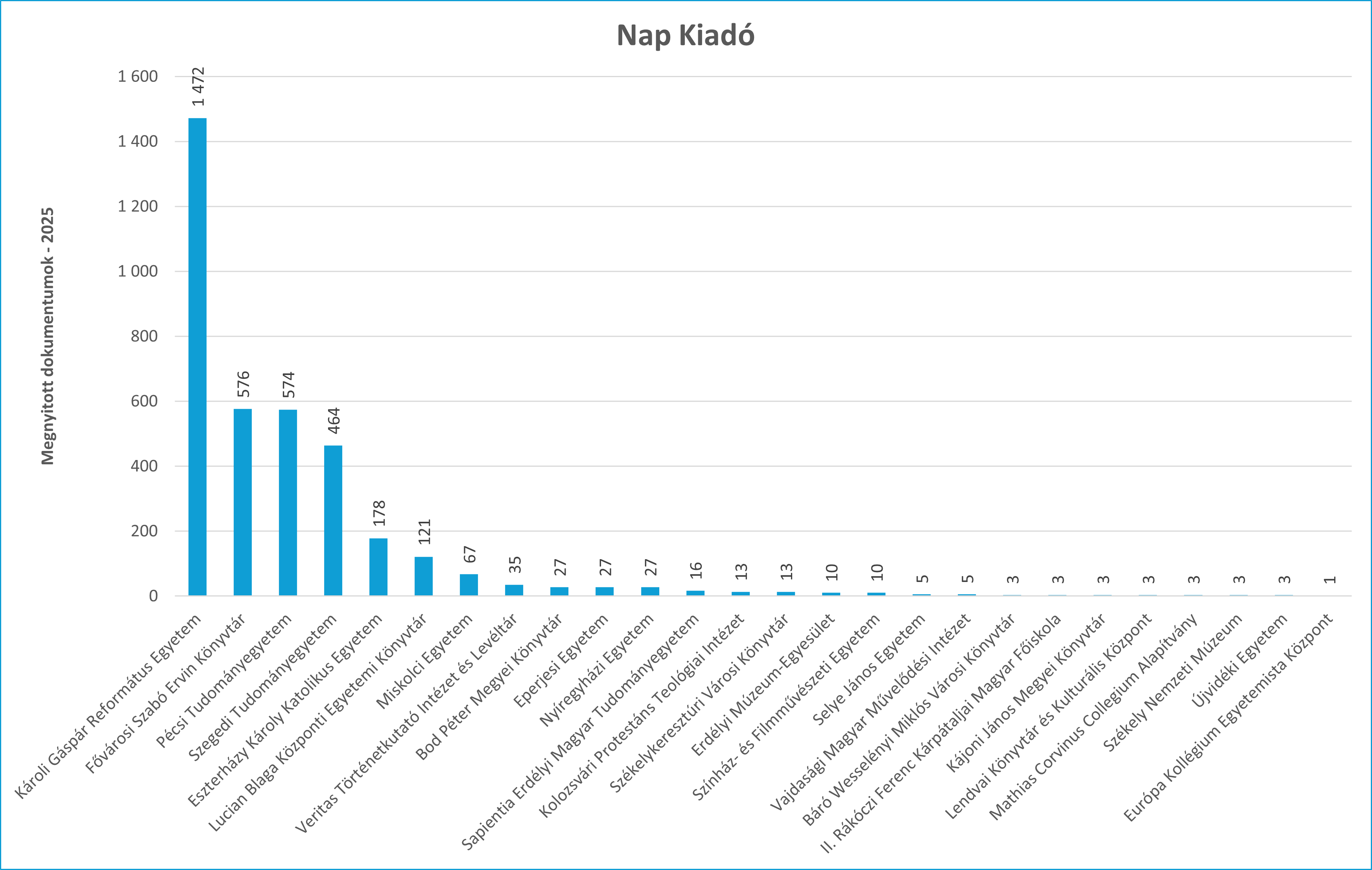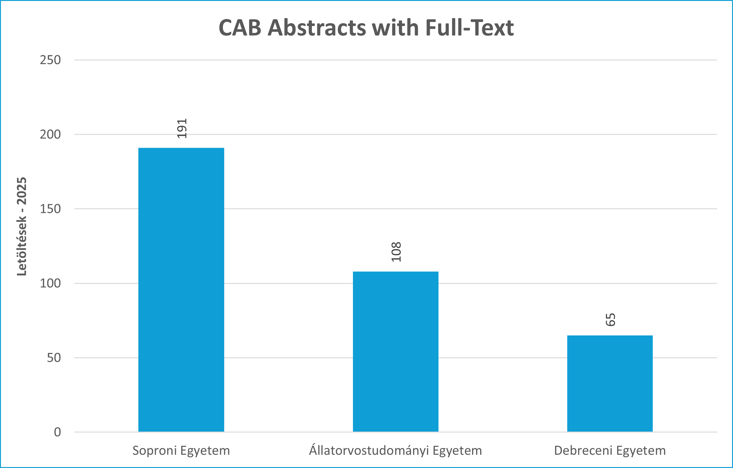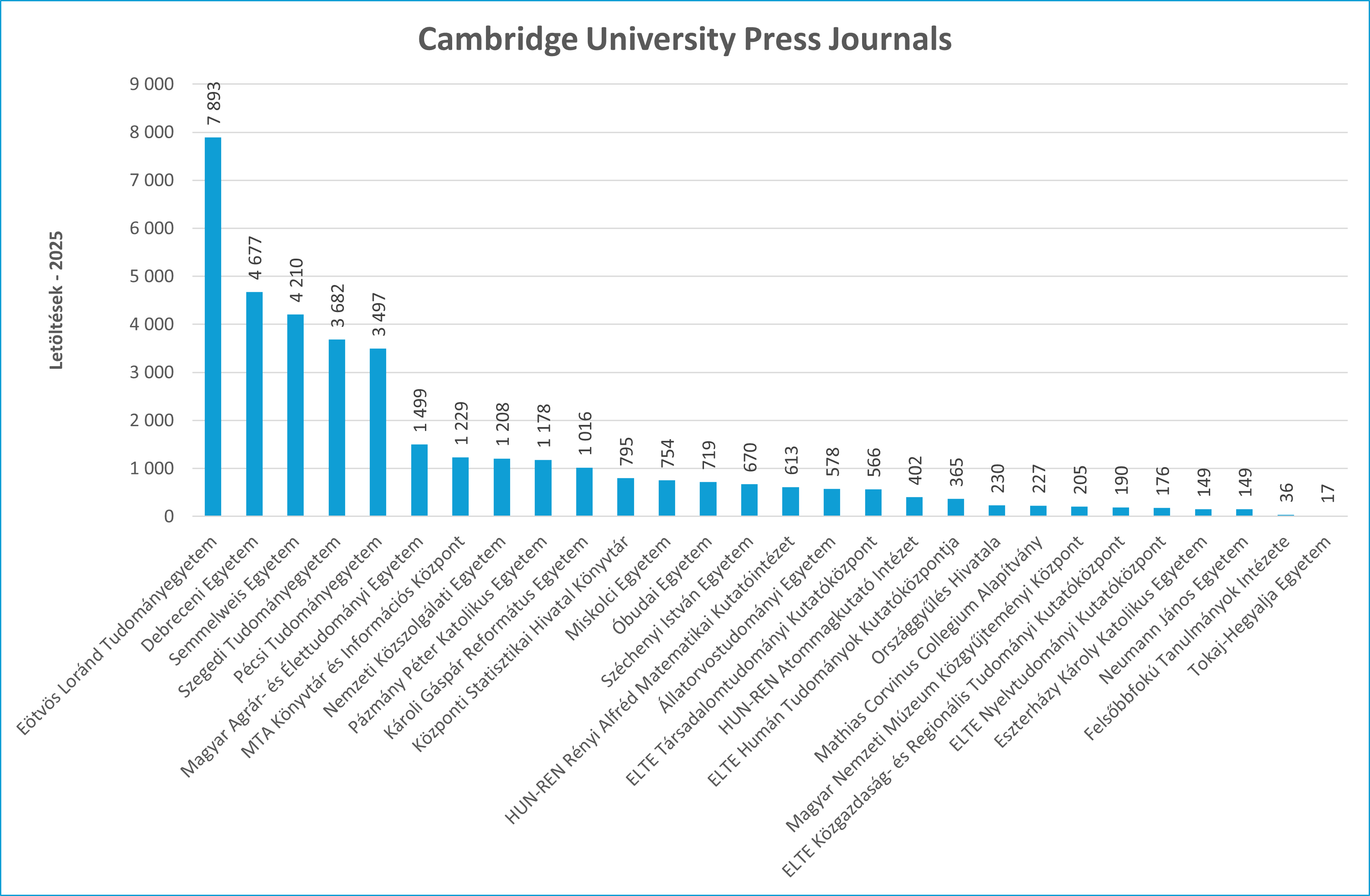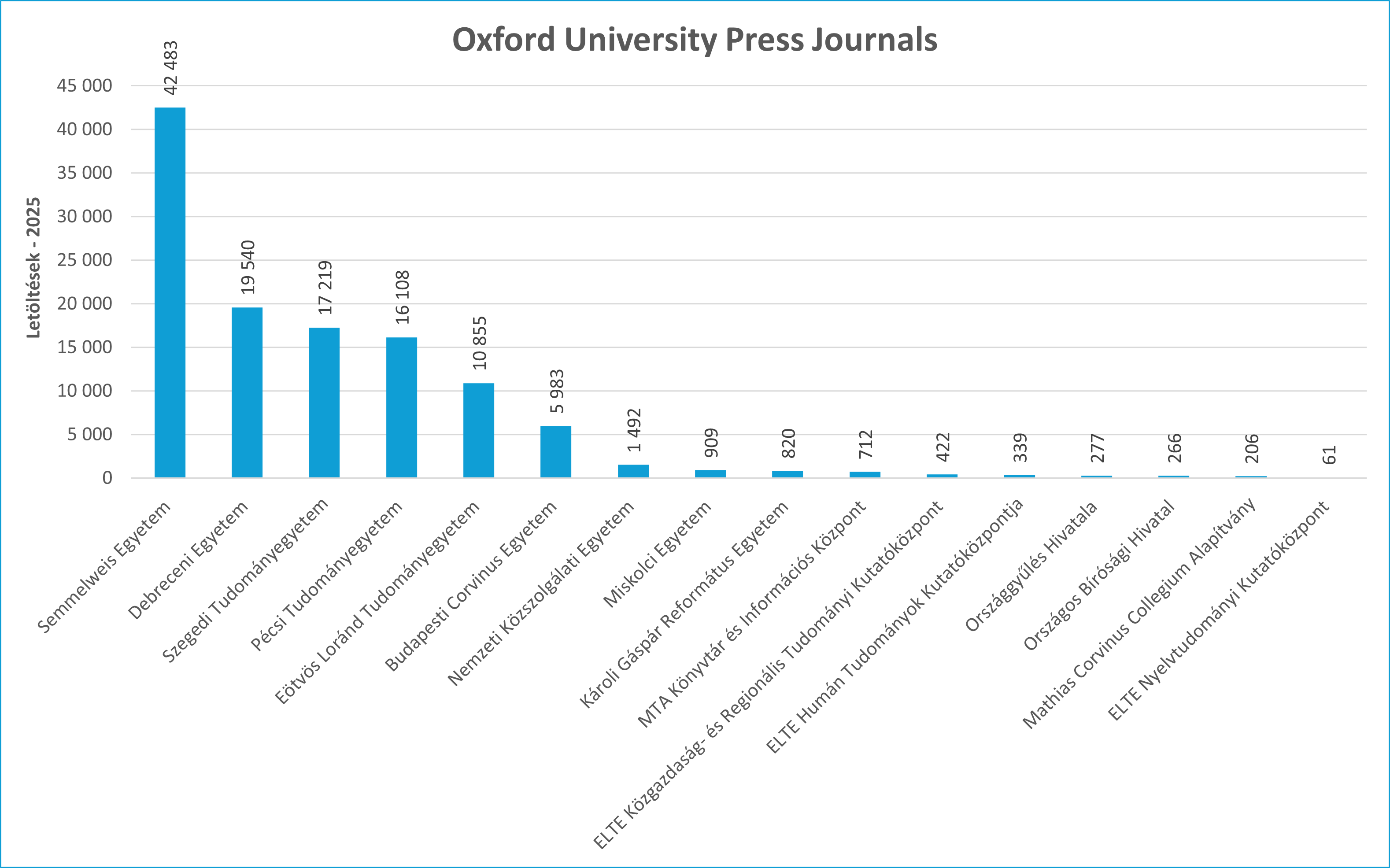 Adatbázisok: Akadémiai Digitális Archívum, Akadémiai Kiadó Folyóiratcsomag, Akadémiai Kiadó Magyar Elektronikus Referenciaművek Szolgáltatása (MeRSZ), Akadémiai Kiadó Szótárai, American Chemical Society (ACS Journals), Annual Reviews, Argumentum Kiadó, ATLA Religion Database with ATLASerials, Attraktor Kiadó, Balassi Kiadó, BMJ, Brill Bibliography of the History and Archaeology of Eastern Europe in the Middle Ages, Brill Book History Online, Brill Encyclopedia of Early Christianity Online, Brill Encyclopedia of Jewish History and Culture Online, Brill International Law & World Order, Brill Jacoby Online, Brill Journals, Brill New Pauly Online, Brill Religion Past and Present Online, Brill´s Encyclopedia of China Online, Brill's Medieval Reference Library Online, CAB Abstracts, CAB Abstracts with Full-Text,Cambridge University Press, CEIC, Central and Eastern European Online Library (CEEOL), Clarivate Analytics – InCites, Clarivate Analytics – Journal and Highly Cited Data (JHCD), Clarivate Analytics – Web of Science, De Gruyter Journals, De Gruyter – Artists of the World, De Gruyter – Bibliotheca Teubneriana Latina Online, De Gruyter – Building Types Online, De Gruyter – Encyclopedia of the Bible and Its Reception Online, De Gruyter – Thesaurus Linguae Latinae Online, EBSCO – Academic Search Complete, EBSCO – Academic Search Ultimate, EBSCO – Art and Architecture Source, EBSCO – Business Source Complete, EBSCO – Business Source Premier, EBSCO – Business Source Ultimate, EBSCO – Econlit with Full Text, EBSCO – Education Research Complete, EBSCO – Education Source, EBSCO – International Bibliography of Theatre & Dance, EBSCO – Legal Source, EBSCO – Political Science Complete, EBSCO – Religion & Philosophy Collection, EBSCO – RILM, EBSCO – SocINDEX with Full Text, Elsevier – Clinical Key, Elsevier – Embase, Elsevier – Reaxys, Elsevier – ScienceDirect, Elsevier – SciVal, Elsevier – Scopus, Elsevier – Scopus AI, EmeraldInsight, EMIS, Gondolat Kiadó, GALE OneFile, GALE Literature, GALE Research Complete, HeinOnline, IEEE, IOPScience, IOPScience – e-könyvek, JSTOR, JSTOR - Artstor, Kalligram Kiadó, Kortárs Kiadó, Kossuth Kiadó, Kriterion Kiadó, Kronosz Kiadó, L’Harmattan Digitális Adatbázis, Lippincott Williams and Wilkins, Magyar Napló Kiadó, Martin Opitz Kiadó, MathSciNet, Mentor Könyvek Kiadó, MMA Kiadó, Múlt és Jövő Kiadó, Nap Kiadó, Napvilág Kiadó, Osiris Kiadó, Oxford Art Online (Grove Art Online), Oxford English Dictionary Online, Oxford Handbooks Online (OHO), Oxford Music Online (Grove Music Online), Oxford Public International Law (OPIL), Oxford University Press Journals, Project MUSE, Proceedings of the National Academy of Sciences of the United States of America (PNAS), ProQuest – Academic Complete, ProQuest – Art Design and Architecture Collection, ProQuest Central, ProQuest – Early English Books Online, ProQuest – One Academic, ProQuest – One Literature, ProQuest Science and Technology Ebook Collection, ProQuest – SciTech Premium Collection, PsycARTICLES, PsycInfo, Royal Society of Chemistry (RSC) Gold, SAGE Journals, Sage Research Methods, Science Magazine, SciFinder Discovery Platform, Springer Nature – Nature, Springer Nature – SpringerLink, SpringerLink – e-könyvek, Statista, Szaktudás, Századvég Kiadó, Szent István Társulat, Tarsoly Kiadó, Taylor & Francis Online, TINTA SzakKönyvTár, TINTA SzóTudásTár, TIT Gondolat Kiadó, Typotex – Interkönyv, Ulrichsweb, UpToDate, USC SOÁ Alapítvány Vizuális Történelmi Archívum, Vince Kiadó, Wiley Online Library, Wiley – The Cochrane Library, World Politics Review